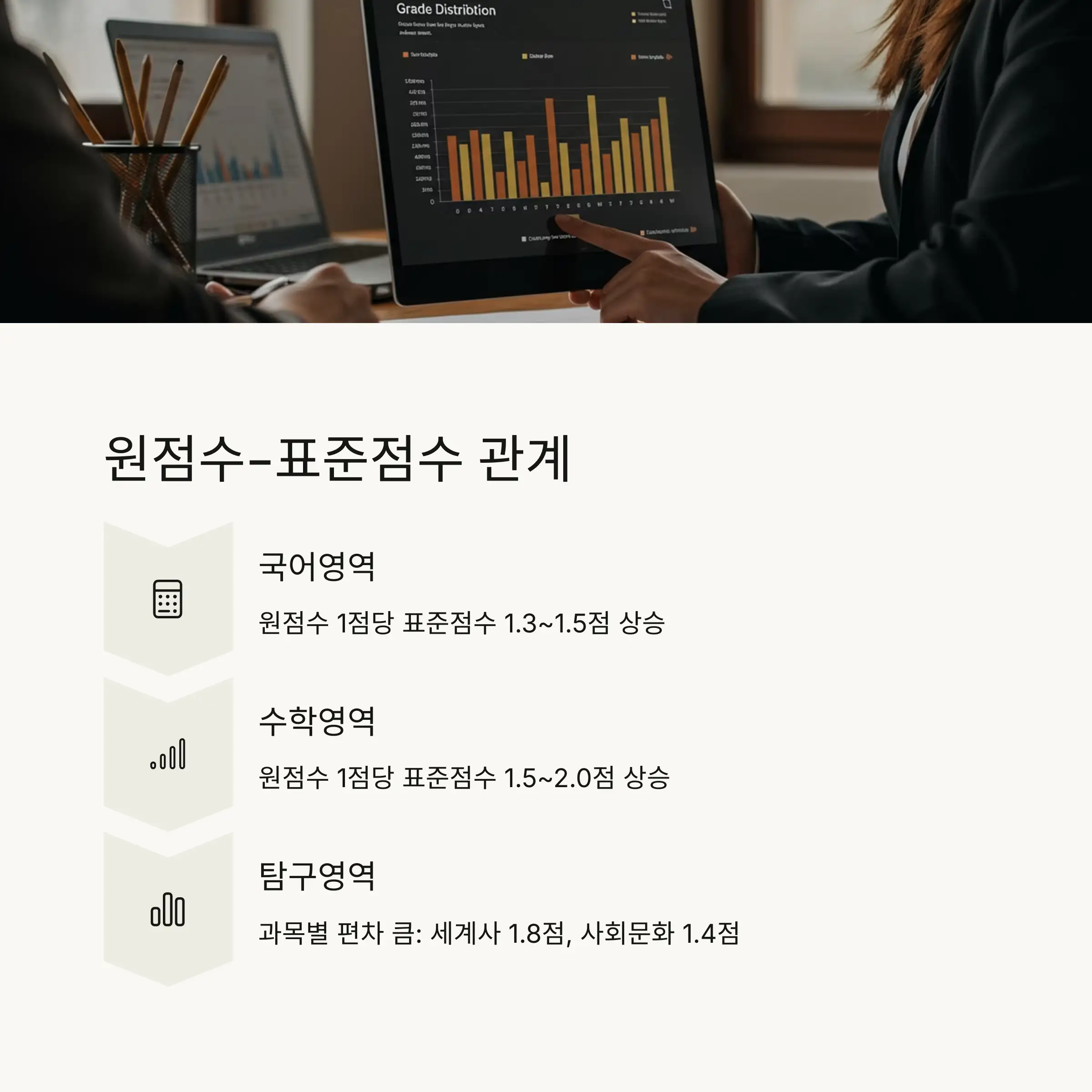 | 국어 | 약 1.3~1.5점 | 상위권 구간에서 상승폭 증가 |